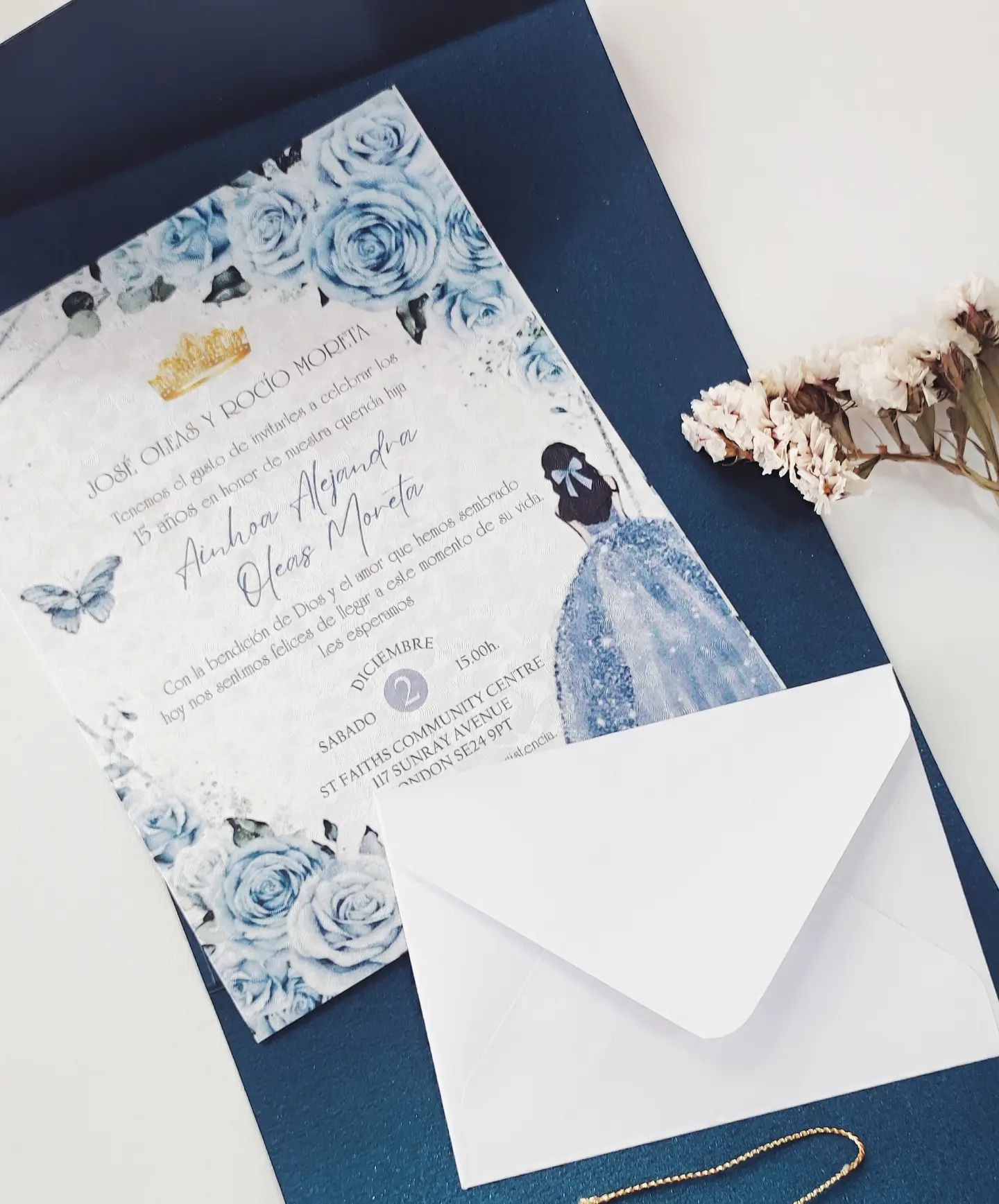 con diseño y los motivos que se requiera, es decir ningún invitación es igual a otra, puedes traer imágenes y la diseñamos a tu gusto.